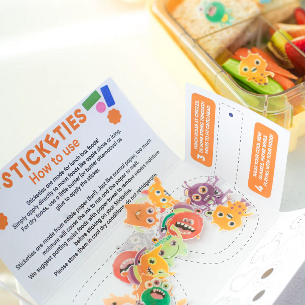 Calling all Monster & Halloween lovers! Monsterific Sticketies are edible, completely food-safe stickers. One of the easiest & most fun way to bring your everyday food to life! Perfect for effortless lunchboxes, themed platters or mealtimes.