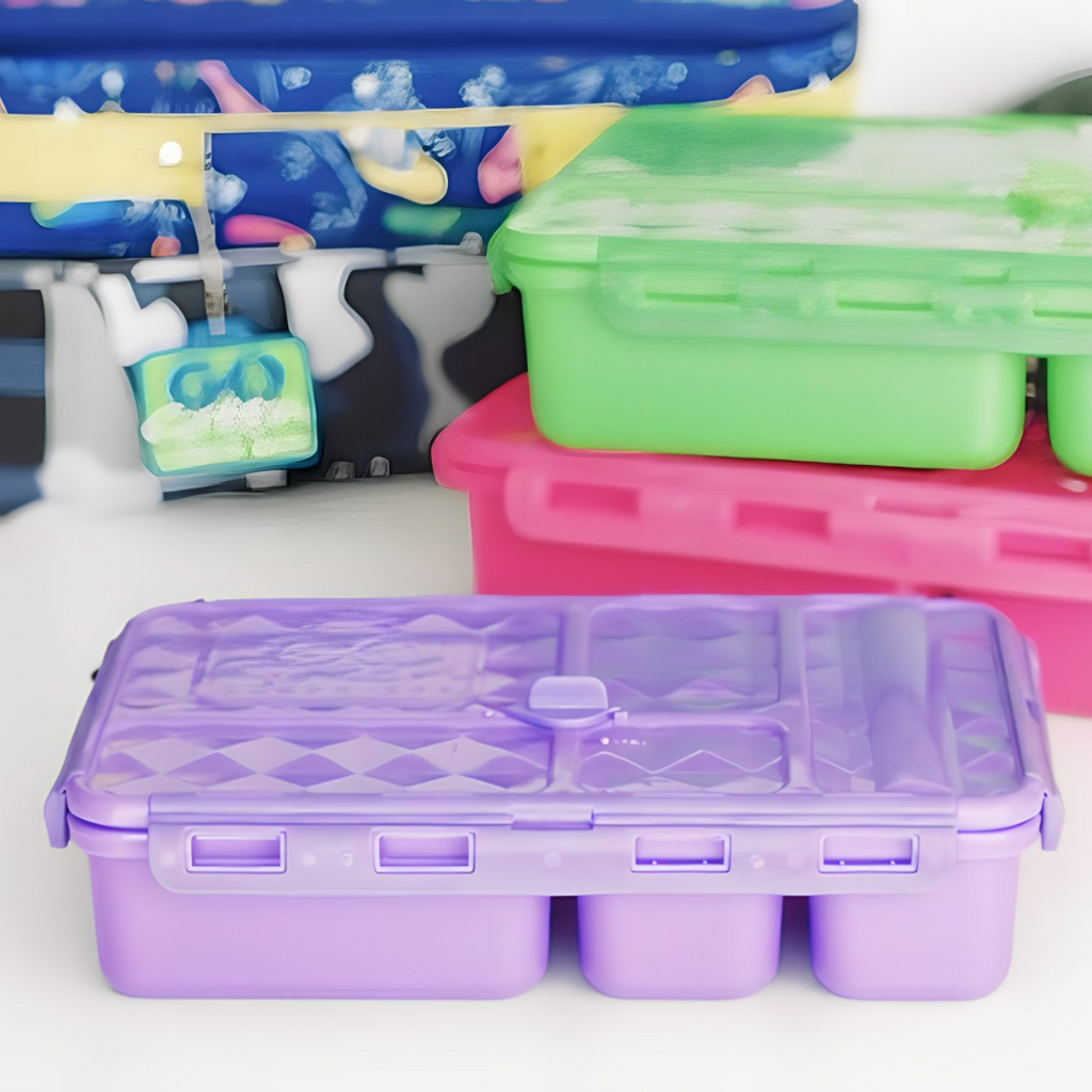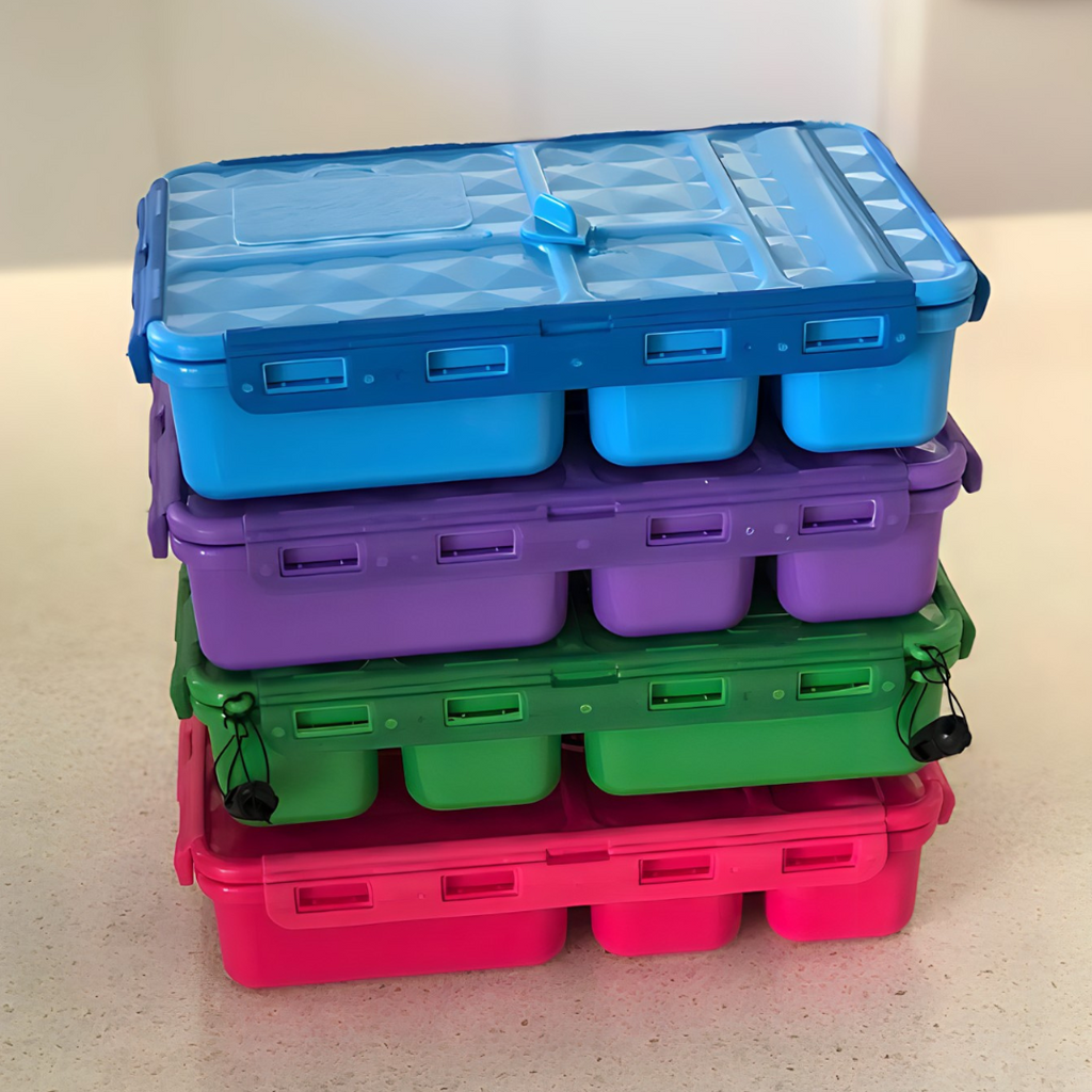 The silicone bands around each compartment ensure a secure leak-proof seal for each of the 5 sections, and its unique turn 'n lock technology ensures food stays fresh all day. The clips on each side are made from silicone to ensure the lunchbox lasts the test of time.