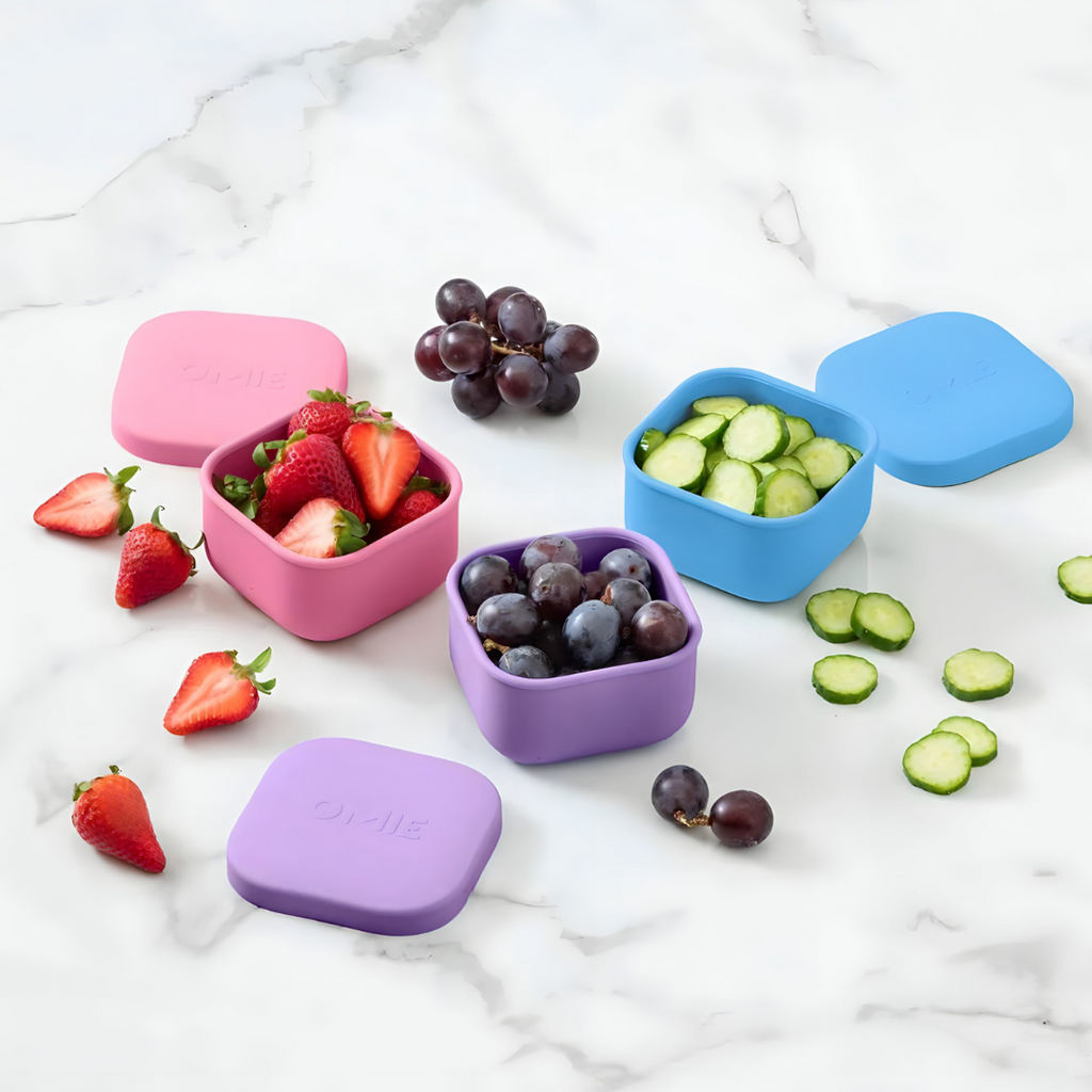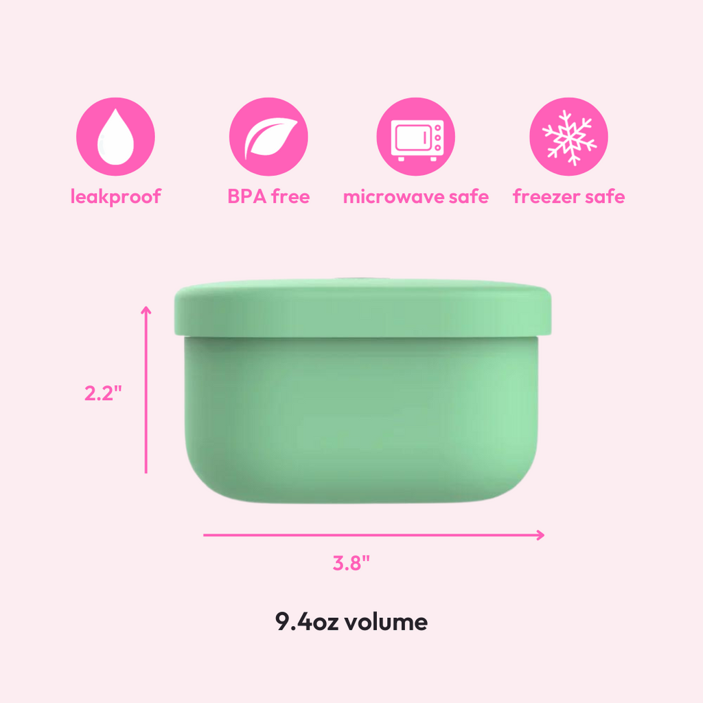 Made from silicone and with a 1.2 cup capacity, it's especially designed to fit inside the large section of your OmieBox V2 lunchbox. It's a microwave-safe, dishwasher-safe, freezer-safe snackbox, perfect for cold foods to be microwaved, smaller foods you'd like to keep confined, or to pack and keep separate as a matching snackbox.