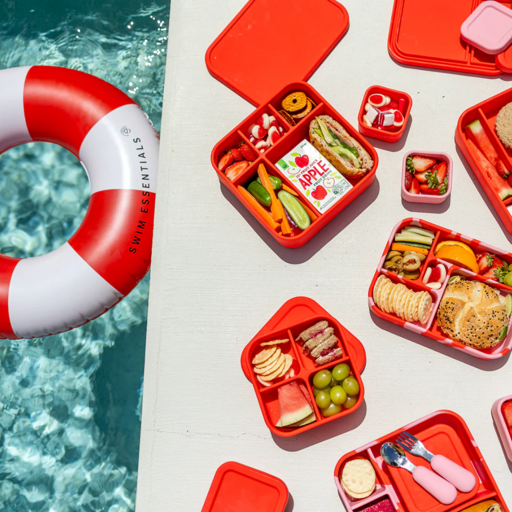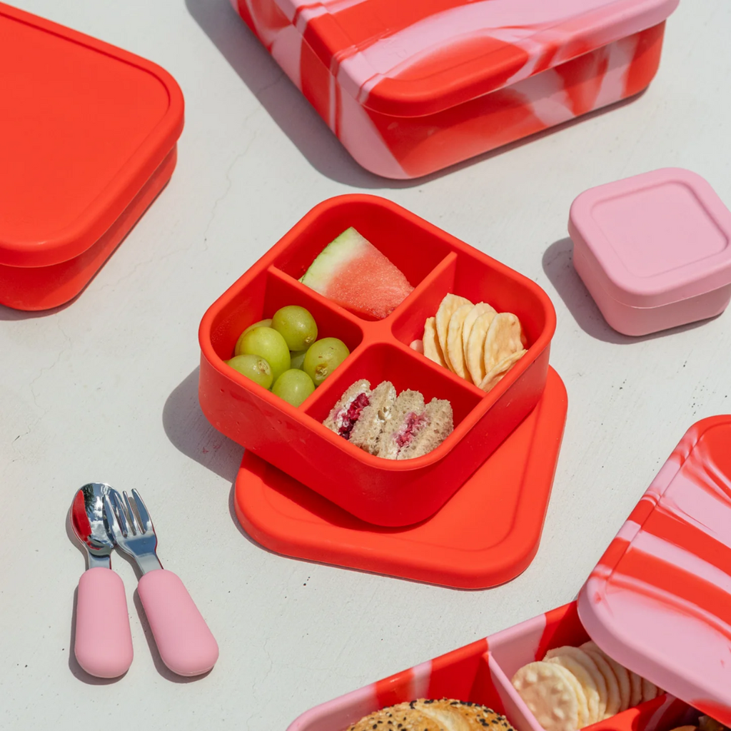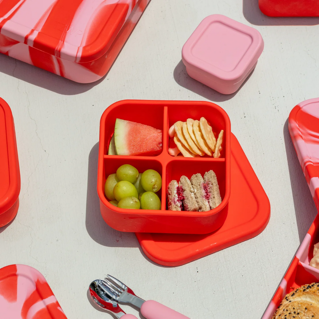 *Note: This snack box is leakproof for wet foods like dips, yogurts, and thick sauces. However, it's not leakproof for liquids such as salad dressings, soup, or sauces. To prevent any excess liquids from crossing over to other compartments of the lunch box when packing foods like watermelon or citrus, we recommend lining with a folded-up paper towel.