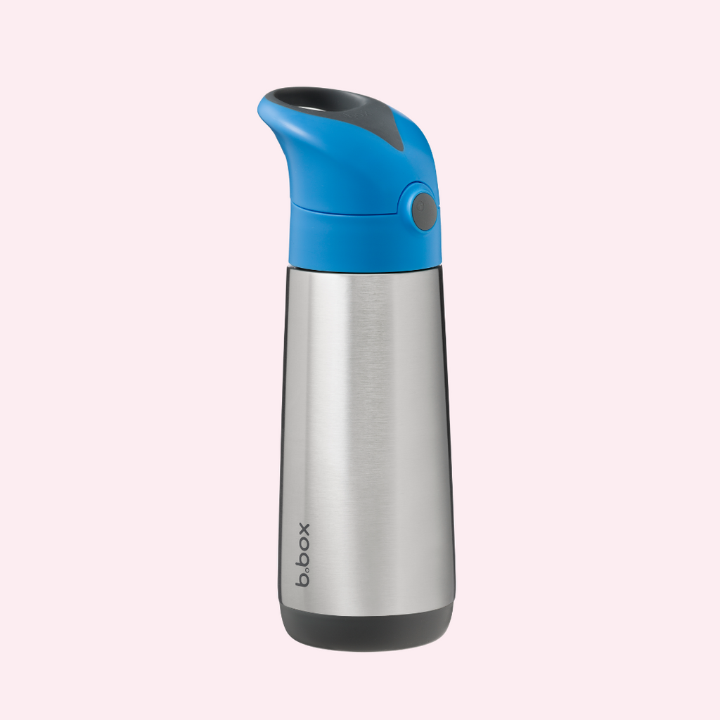 Take all day hydration to the next level with b.box's 500mL insulated drink bottle. With an easy front press button, it's designed for one-handed opening & sipping, for busy kids on the go. The integrated carry handle makes it easy to carry, and its simple click lid means ensures no leaks when in the closed position.