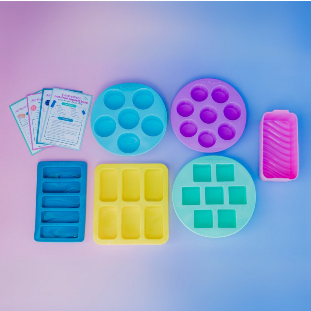 Every one of our best-selling lunchbox-sized moulds, giving you everything you need to swap the expensive and heavily processed supermarket snack aisle for your very own kitchen. No overpriced snacks, no lengthy preheat times, no overwhelm—just smarter, easier baking with zero guesswork. Specially designed to fit inside most large, single basket Air Fryer types.