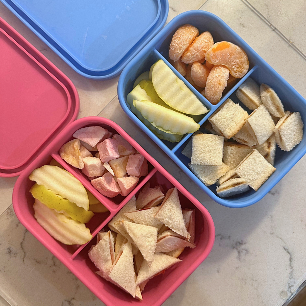 Melii Luxe Bite Size Sandwich Cutters - Squares & Triangles - Pink/Purple