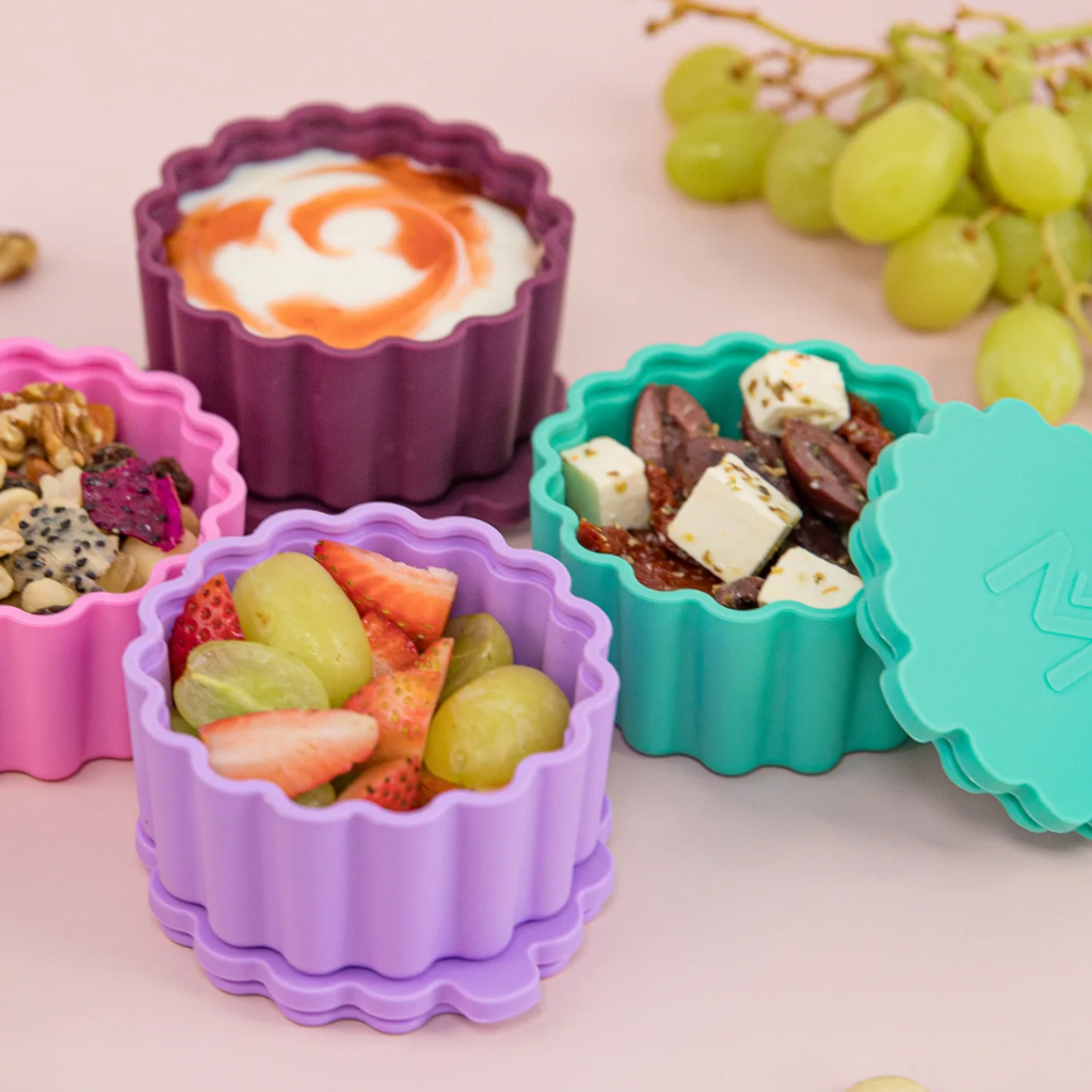 Made from BPA Free, food-grade silicone the MontiiCo Scallop Tubs are grippy enough to stay put in a lunch box, but still easy for little hands to open and close. Fill with fruit, bliss balls, yoghurt, hummus, chia pudding, pretzels, popcorn - with a 130ml capacity, the possibilities are endless.