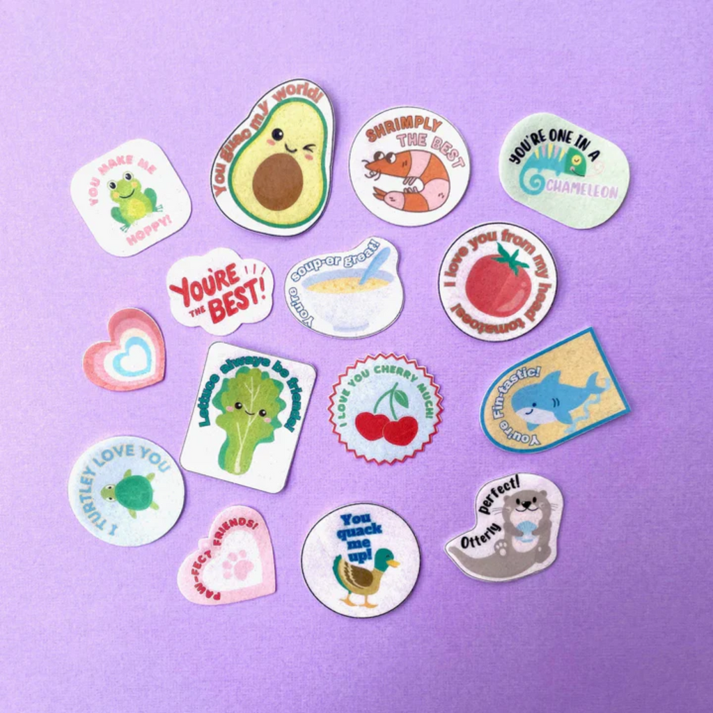 ✨ Each pack contains 15 pun-filled, love-themed edible stickers