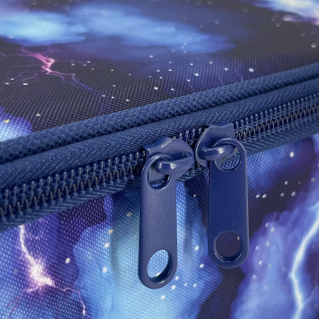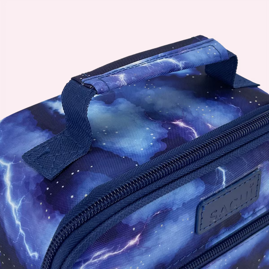 Featuring a zip front pocket, an inner mesh pouch for snacks and other small items, and a main storage compartment big enough to carry a drink bottle upright. This lunch bag is complete with a strong carry handle and name tag, making it an easy, practical lunchtime accessory.