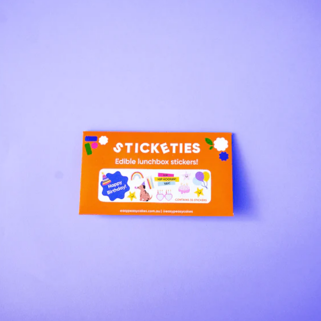 Sticketies are edible stickers designed to make lunches fun. They're fun, simple to apply, sugar and gluten free! Perfect for encouraging fussy eaters or just putting big smiles on little dials. They're made from natural wafer paper and contain no flavourings.